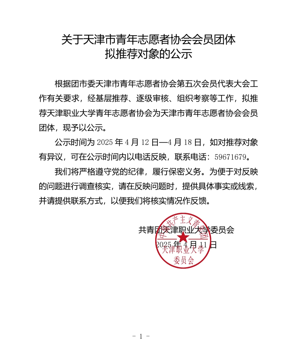关于天津市青年志愿者协会会员团体 拟推荐对象的公示