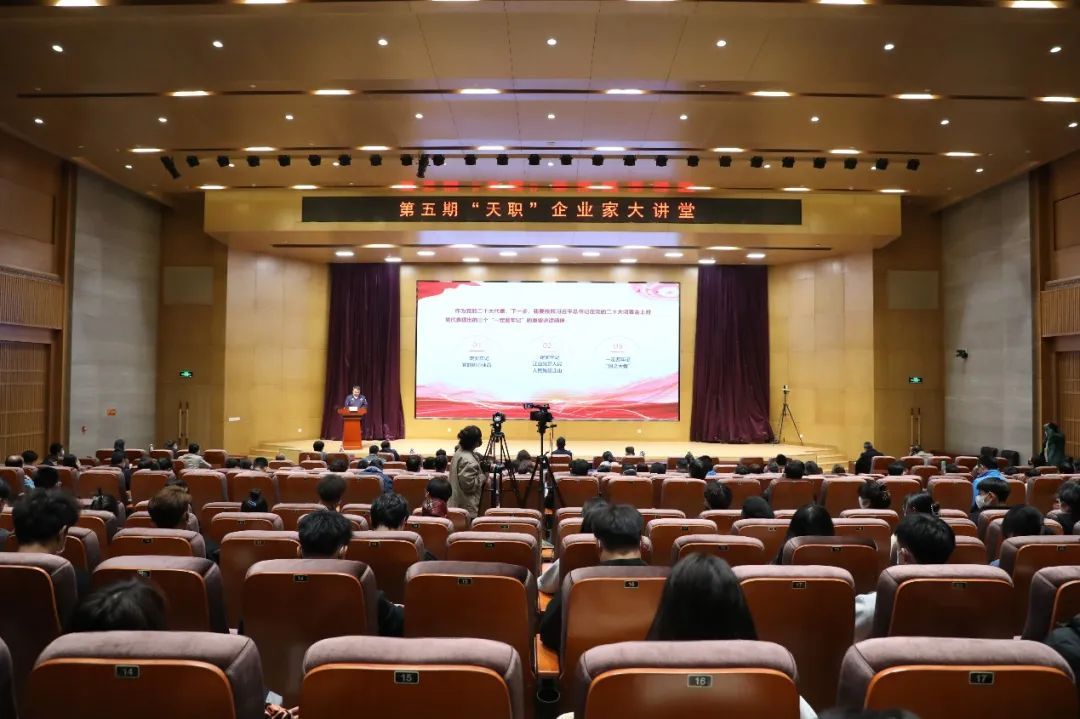 10月27日下午,学校邀请全国劳动模范张黎明同志进校园做客“天职”企业家大讲堂,为师生做题为“踔厉奋发 勇毅前行——用新的伟大奋斗走好中国式现代化道路”的讲座。校团委组织全校青年学生通过线上线下结合方式收看收听了讲座,其中80余名青马学员、团学骨干及青年学生代表在图书馆报告厅参加了此次活动。